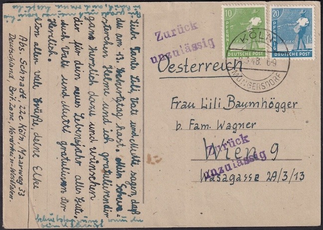 5. Februar 2026 um 20:07 Hat eine Antwort im Thema Zurück unzulässig verfasst.BeitragIch meine mich erinnern zu können, gelesen zu haben, dass zu dieser Zeit Bilderkarten in Österreich von der alliierten Zensur generell als unzulässig betrachtet wurden. -