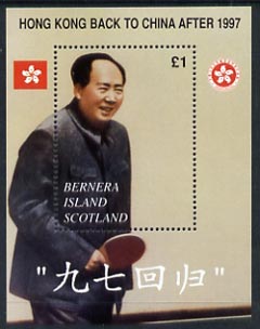 Bernera ist eine Insel der äusseren Hebriden die auch Lokalpostmarken produziert hat. Hier einige Beispiele. kartenhai hatte nach der Bedeutung der chinesischen Schrift auf der Mao-Marke gefragt. Ganz einfach "1997 Übergabe" von Hongkong an China.