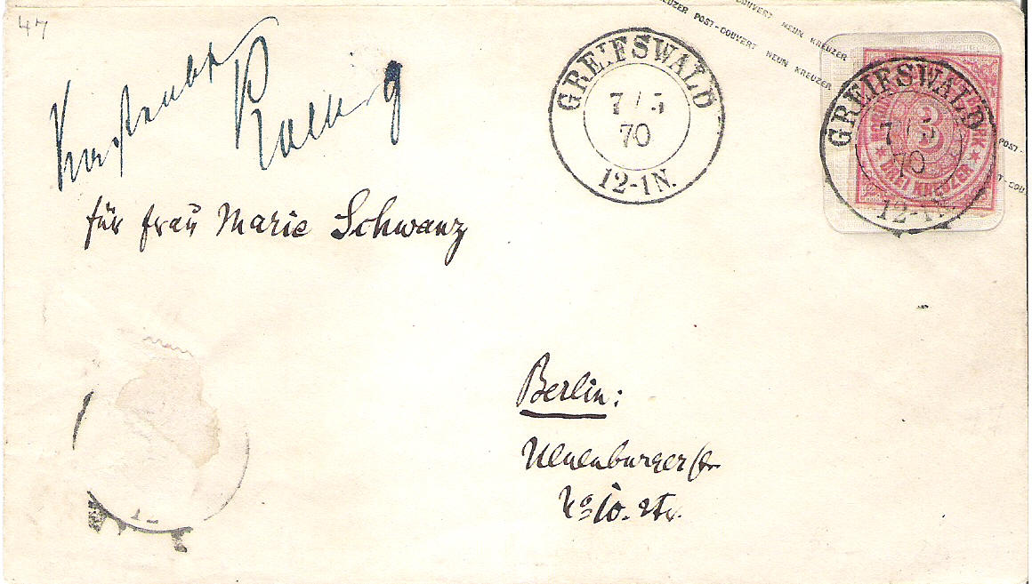 Der Porto 3½ Gr war nicht Grenzpoto, dies war den Porto von Rheinland und ehemalige T. u. T. Groschengebiet.