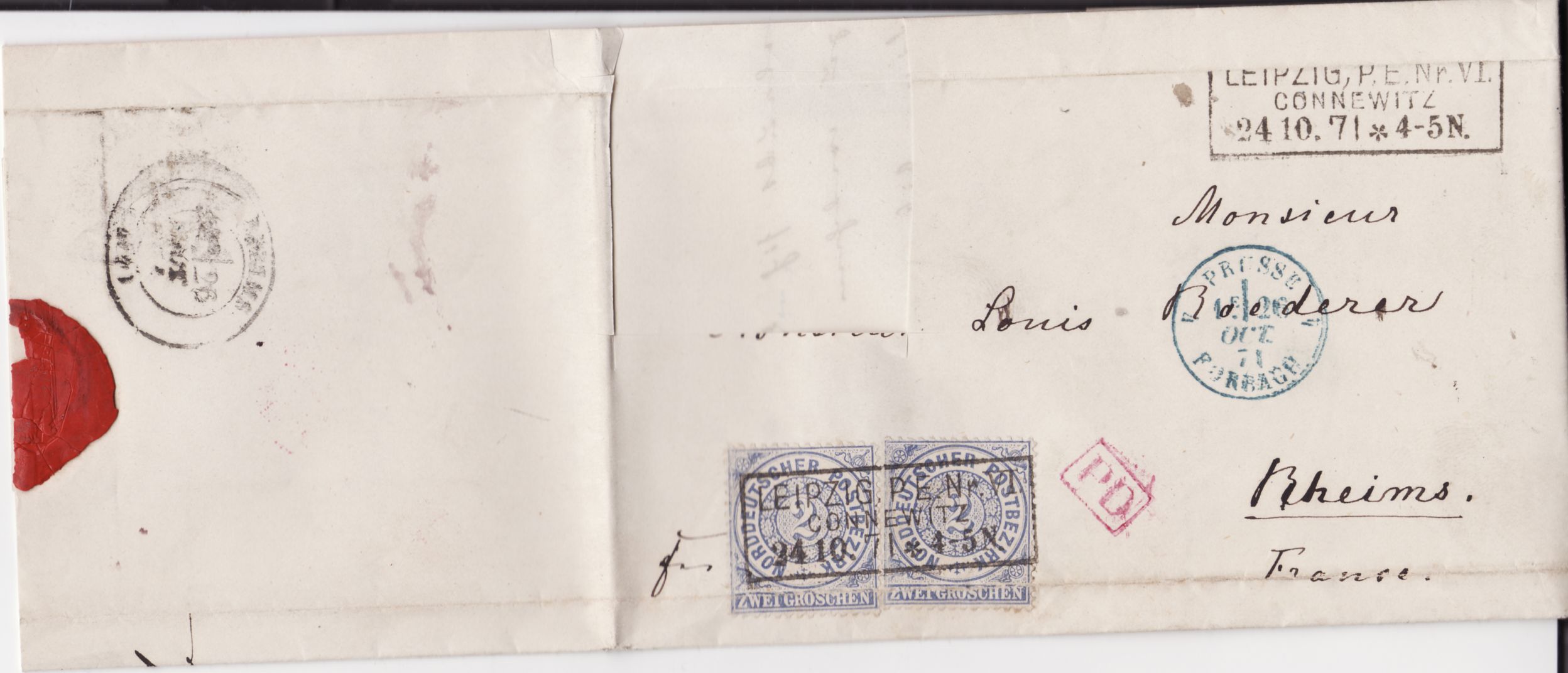2 Gr. Grenzporto in den NDP Zeit, siehe in Post und Telegraphen Handbuch von 1869 und ab 16.5.1872 war den Grenzporto 2½ Gr. für Frankierte Briefe und 3 Gr. für Unfrankierte. Siehe den Buch: Der deutsche Grenzrayon. Alles nach Frankreich.