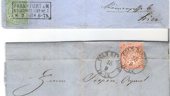 Erstens eine hübsche Drucksache aus Frankfurt am Main vom 17.9.1870 nach Augsburg. In umgekehrter Wegstrecke suche ich noch ein Stück in vergleichbarer Qualität. Wer mir eines anbieten möchte ...