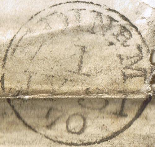 Zum Thema Ortsbriefe möchte ich einen Beleg zeigen, bei dem ich meine Abneigung gegenüber Stockflecken einmal verdrängen mußte.