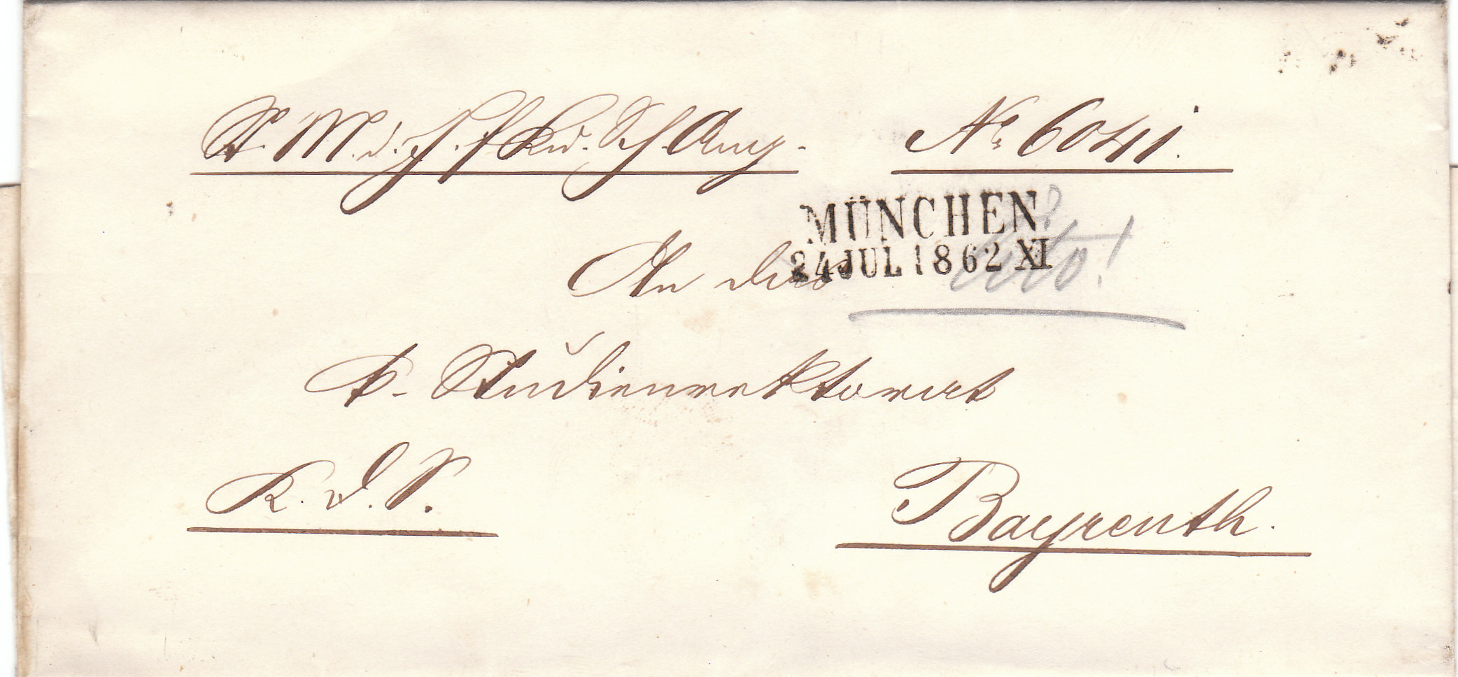 Ich habe kürzlich ein Brief "bekommen" der ich hier zeigen möchte. Es ist ein schöner Parteisache Brief der von Altötting nach Straubing gegangen ist, 5. November das Jahr 1865.