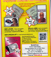Beim österreichischen Briefmarken-Auktionshaus Thomas Juranek wurden am 26.4.2012 insgesamt 3 Dalai-Lama-Marken zur Versteigerung angeboten, 2 x postfrisch zu je 1.200,- EUR Ausruf und einmal, wer hätte das gedacht, ein Randstück, echt gelaufen am 11.1.2010 aus Wien, für 1.800,- EUR Ausruf. Von einem gestempelten Exemplar habe ich bis heute noch nie etwas gehört, so eine unverausgabte Rarität einfach per Brief zu versenden, ist schon ein enormes Risiko für den Absender, da die Marke nicht frankaturgültig ist, sie könnte von der Post jederzeit eingezogen werden bzw. auf dem Postweg auf Nimmerwiedersehen verschwinden, wenn jemand diese Rarität auffällt. :O_O: