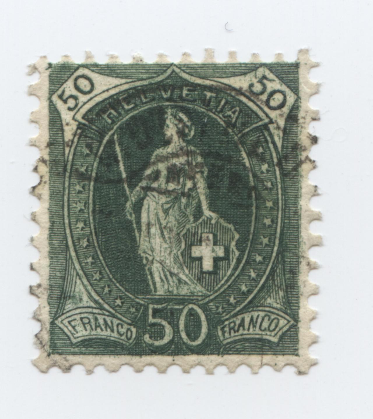 ich hab hier eine 50 igergrün mit einer Helvetia mit Trauerschleier als PF.