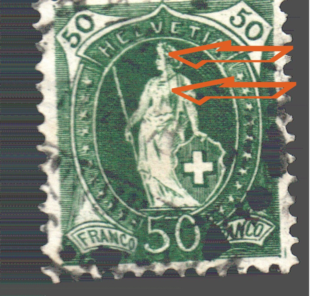 deine 50er mit Trauerschleier ist eine Druckzufälligkeit und unter immer wiederkehrende Abart im Zumstein gelistet unter 1.24 oder 1.25 und wird bewertet mit Zuschlag von 5 - 50 Fr.