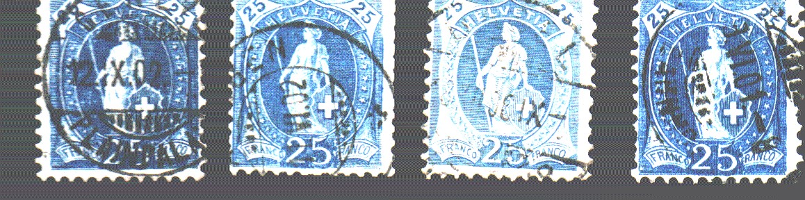 hallo zusammen hab noch mal 2 Helvetias rausgebuddelt Mi.Nr. 67 25 C schräge Retusche auf der rechten Seite und Doppeldruck Franco + Retusche im Schriftband bei V bis dann der Gernesammler