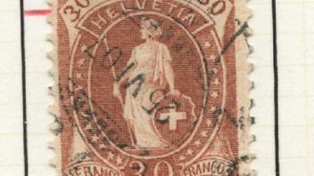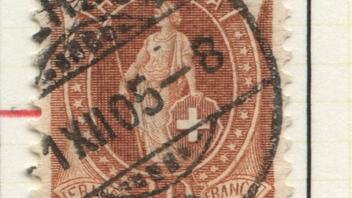 Interessant ist aber die 50-Rappen-Helvetia in blau. Das ist eine Mi-Nr. 62YC ( Zumstein 70D ). Dieser Plattenfehler wird unter der Nummer 70D.2.29/I gelistet: Starker Strich von der linken oberen Ecke bis zum Speer und schlägt mit einem Aufschlag von ca. 95€ zu Buche.