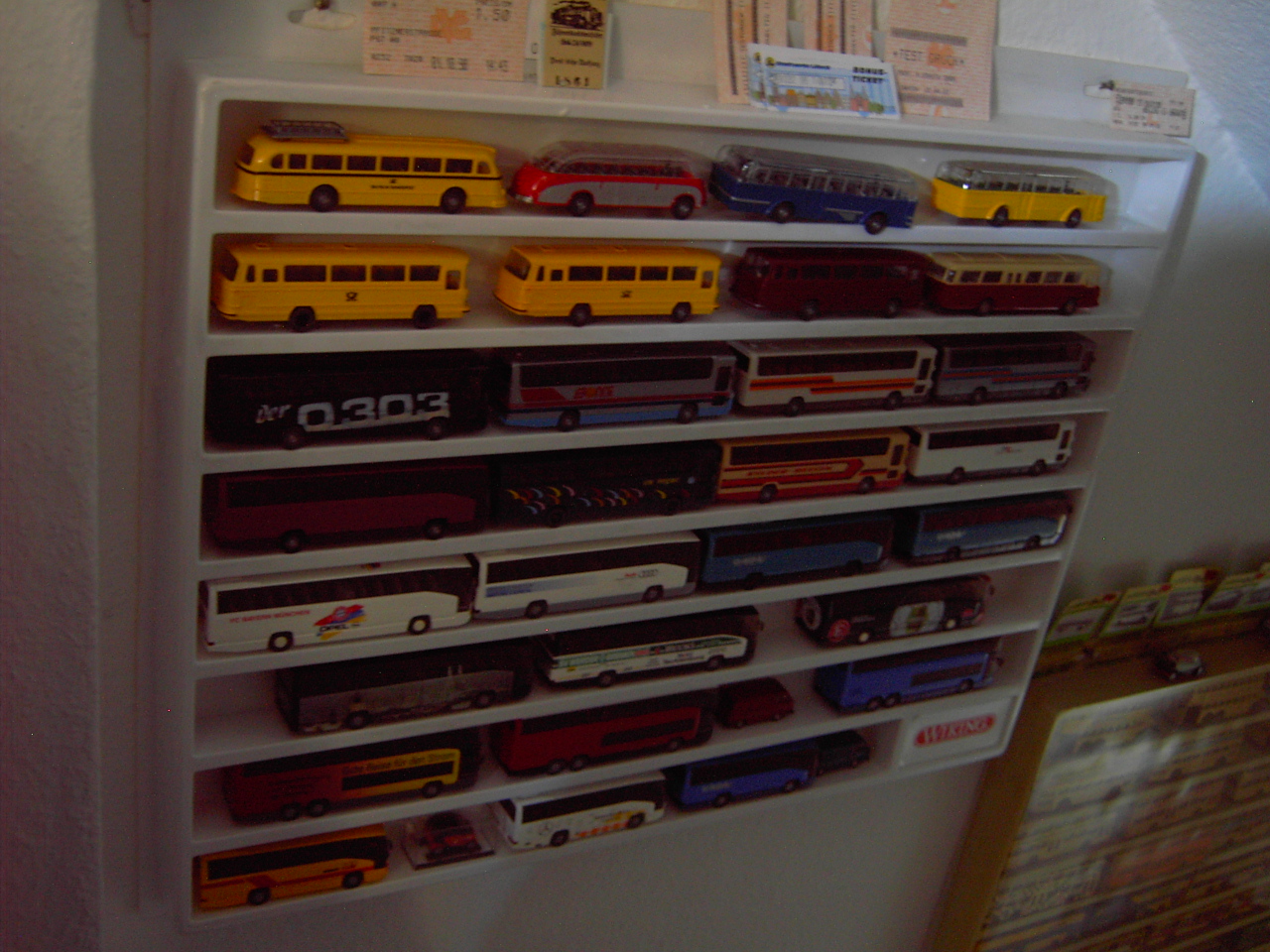 Ich habe zwei Wandvitrinen mit Modellautos im Maßstab HO, aber intensiv sammel ich die nicht, es ist eher eine Ansammlung von Fahrzeugen der Epoche III (50er und 60er Jahre), die mal auf die noch nicht gebaute Modelleisenbahnanlage sollen. Die Modelle aus dem Postmuseums-Shop sind nicht dabei.