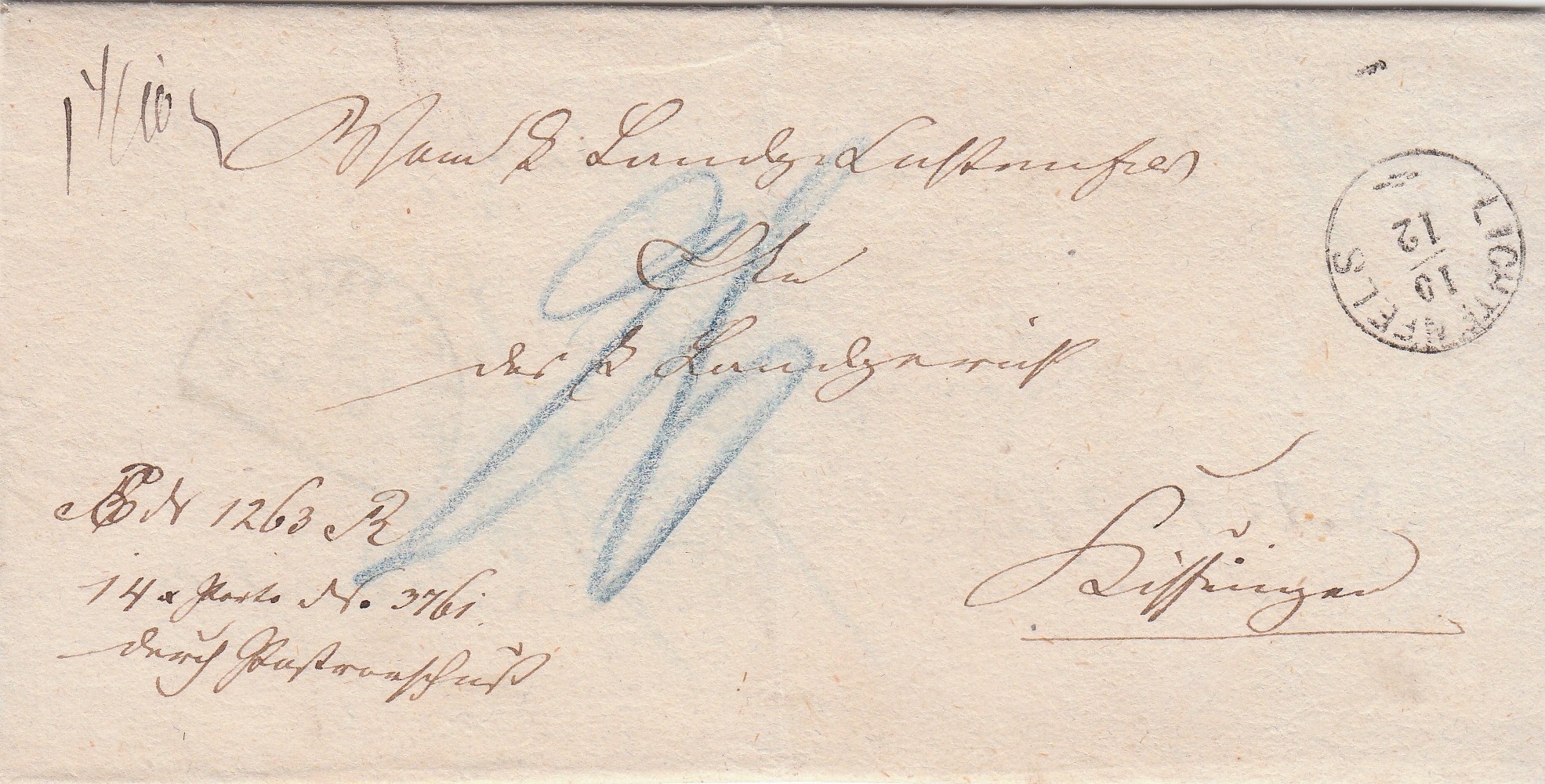 Handschriftlicher Vermerk "EN 1263 R 14 x Porto No 3761 durch Postvorschuß".