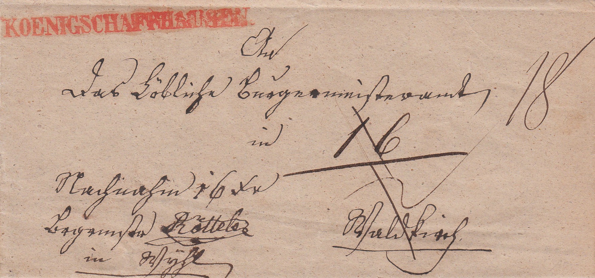Als Porto wurden fällig 20 Pf entsprechend der Gebühr für einen Brief bis 10 Meilen plus einer Vorzeigegebühr in Höhe von 10 Pf.