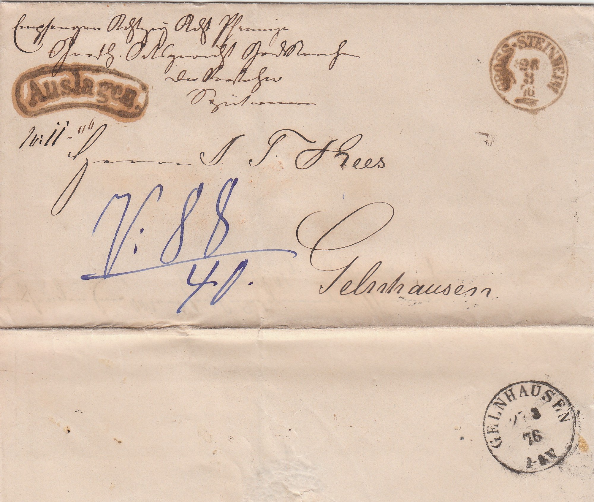 Adressiert "Herrn I. T. Kees Gelnhausen".