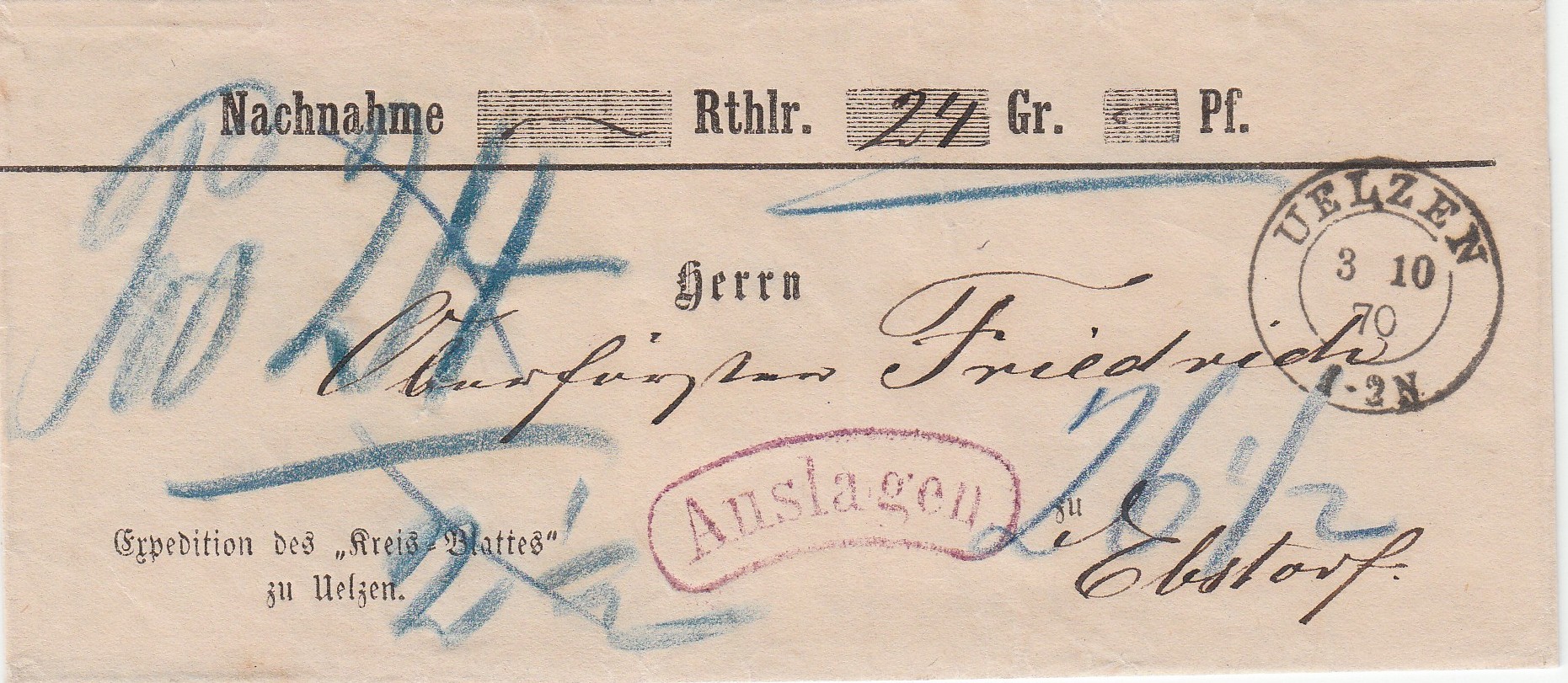 Haben auch dieser Brief bekommen. Ist das ein Vorschußbrief? Sendet von Dippoldiswalde nach Altenberg. Auf dem Brief steht 1805? Mit bleistift geschrieben.