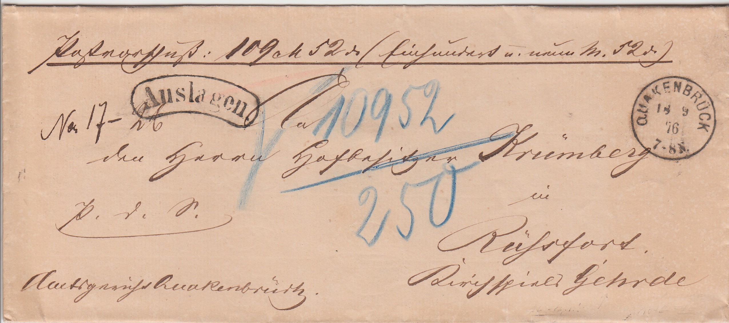 Der Brief lief übrigens nicht in das Herzogtum Oldenburg, sondern nach Oldenburg in Holstein (also nach Dänemark).
