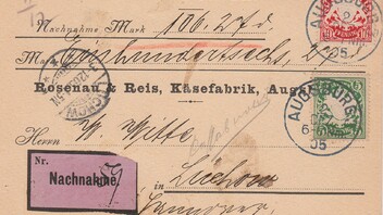 Auslage war das für die Post, die beim Adressaten 12 Kr. zum Nachnahmebetrag verlangte. Aber waren das nun insgesamt 12 Kr. oder 2 x 6 Kr., weil der Brief ja zum und vom Adressaten wieder an den Absender zurück musste?