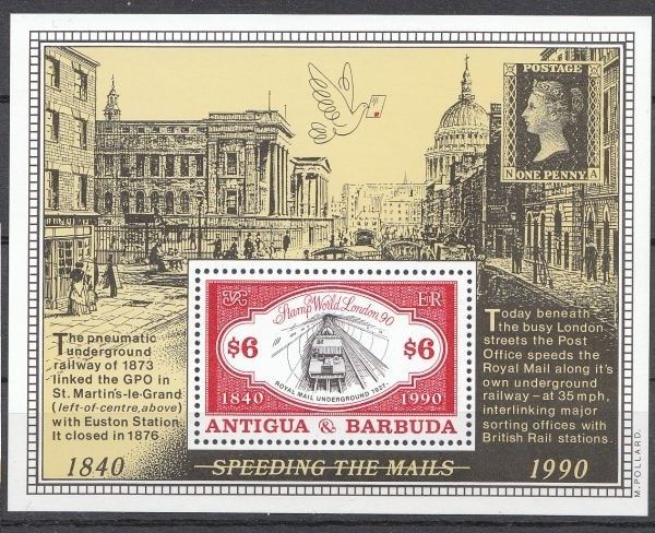 2) Nochmal London - diemal ein Block aus Antigua Barbuda den ich auch sehr lange gesucht habe. Hier die eine Version, es gibt von Barbuda Post noch eine Variante (Gesucht!!) mit Aufdruck. Abgebildet wird die Post-Underground in London.