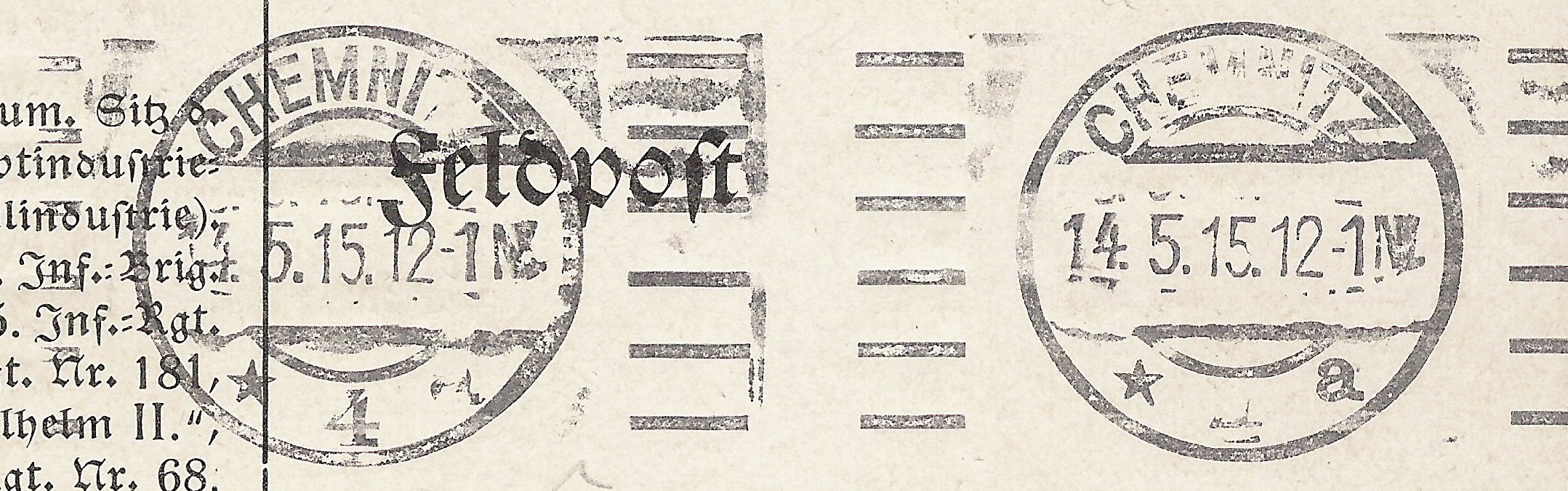 CHEMNITZ * 1 a vom 14.5.15 mit Stempelkopf 22 und Stempelband 26