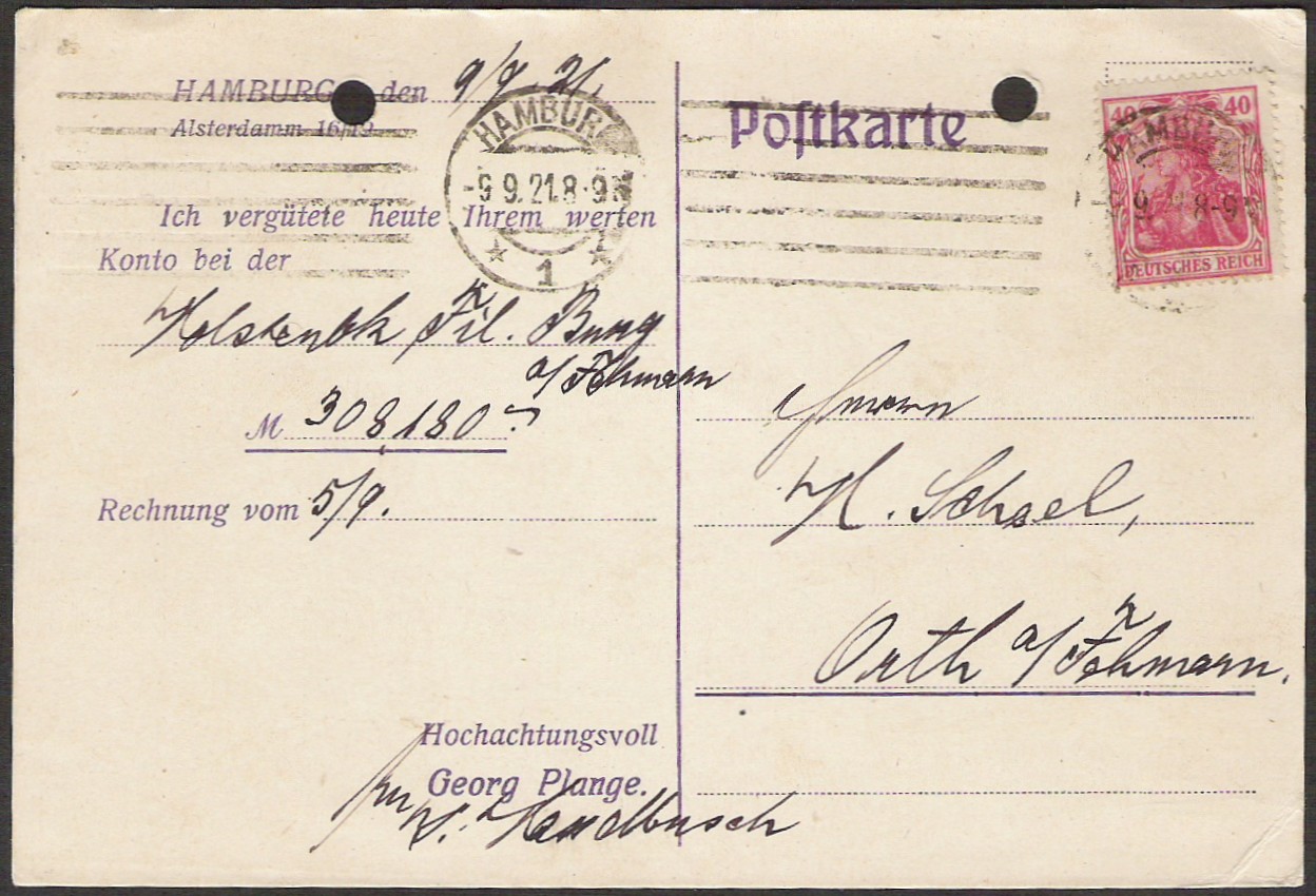 Noch mal ein Hamburger.Leider hat die Karte zwei häßliche Löcher,was mich persönlich aber garnicht stört.