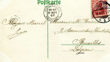 Ein Beispiel einer frühen Verwendung als Ankunftstempel in Brüssel aus dem Jahr 1907 auf den Silverberg in seinem Katalog nicht näher eingeht. Er katalogisiert den Stempel erst nach 1918.