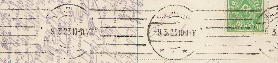 Im Handbuch vom 11.2.24 -27.4.33 verzeichnet.Meiner ist vom 10.9.22.An Hand des verklebten Portos von 3,50 welches vom 1.7.22-30.9.22 gültig war gehe ich nicht von einem falsch eingestellten Stempel aus.Somit müßte das Datum um 17!!! Monate verschoben werden.