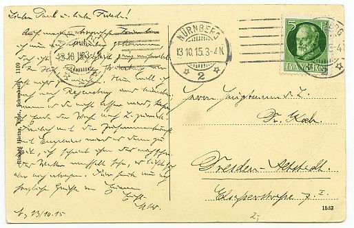 der seine Tätigkeit eventuell noch in die Zeit der Geldentwertung retten konnte. NÜRNBERG 13. 10. 1915.