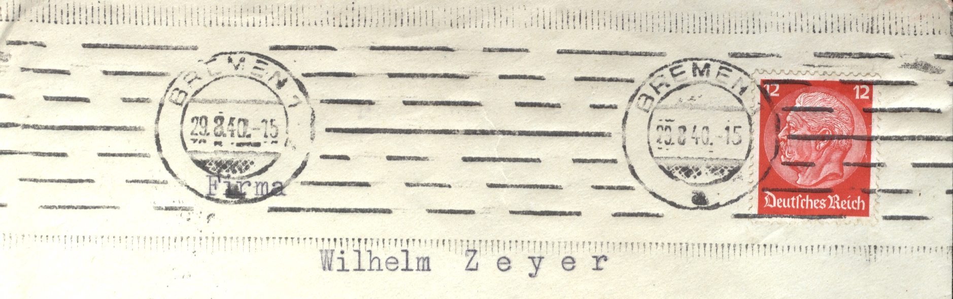 Weit mehr als die Hälfte meiner Bremer Bandstempelbelege sehen so aus, egal aus welcher Zeit sie stammen. Bei anderen Städten findet man nicht einen derartigen Abdruck der Transporteinrichtung.