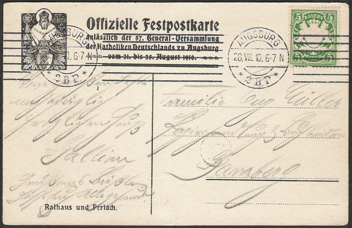 AUGSBURG * 2 B P * mit Stempelkopf 31 und Stempelband 17.3 vom 28.VIII.10 (9 Tage später als im Handbuch angegeben)