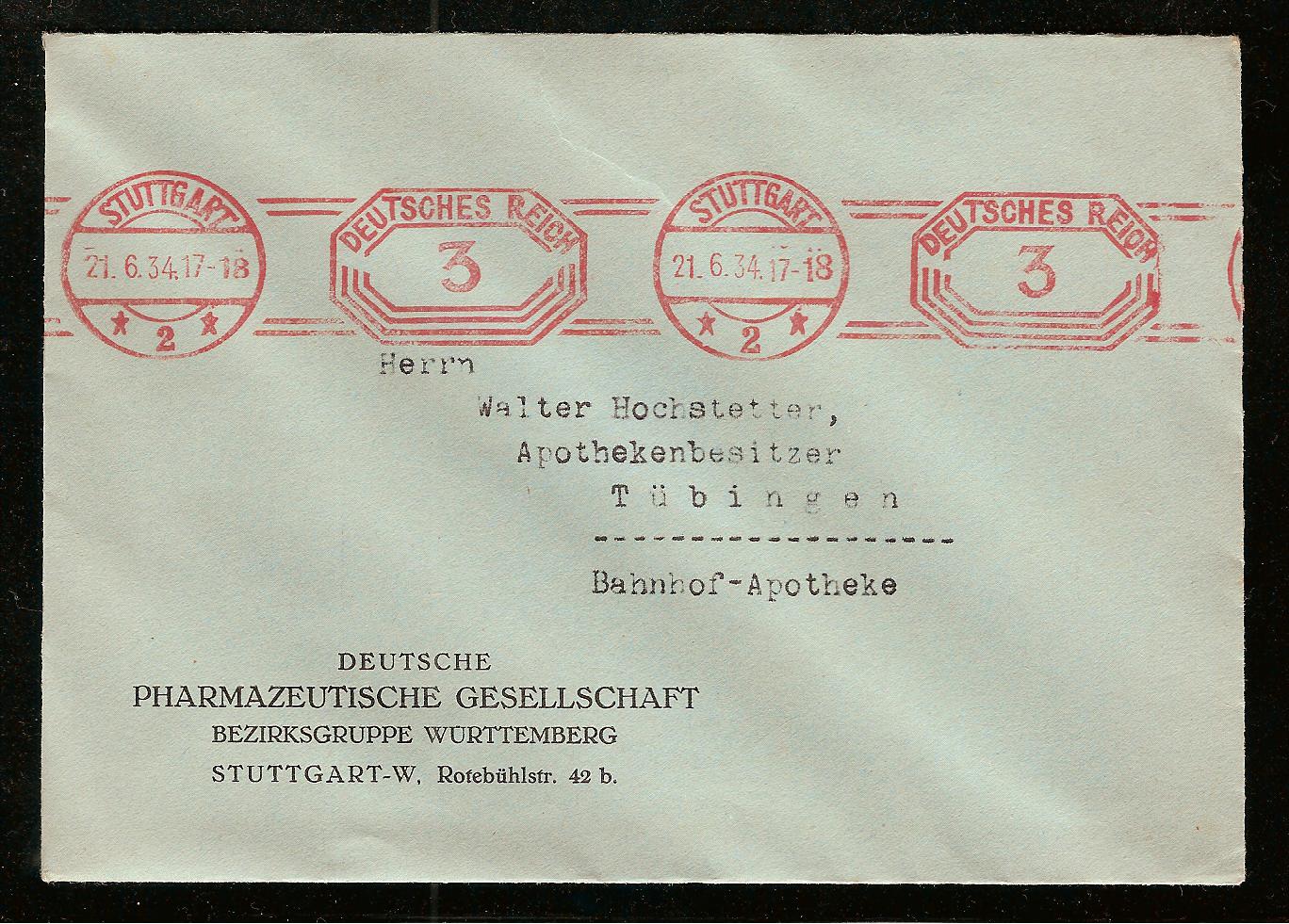 Ich zeige noch ein Exemplar aus Stuttgart. Man sieht bei den beiden Stücken nochmals im Vergleich die unterschiedlichen Abstände bei den Stempen mit 2 (Stuttgart) bzw. 3 (Augsburg) Stempelköpfen. Beides sind allerdings Sylbe Machinen. Vom Konkurrenzprodukt Krag wurde in Bayern und Württemberg nur jeweils eine Testmaschine angekauft. Sylbe war billiger. Bei der Reichspost war das anders. Bis 1910 setzte Krag hier 49 Maschinen ab (Sylbe: 3). Ab 1911 wurden dann auch von der Reichspost (verbesserte) Sylbe-Maschinen gekauft und für Krag-Maschinen gabe es keine Aufträge mehr. Sehr schnell wurden dann aber Halbstempelmachinen gegenüber allen Bandstempelmaschienen bevorzugt und das war das Ende auch für Sylbe. Es wurde hier ja schon erwähnt, dass die Zuordnung der Bandstempelabdrucke zu diesen beiden Herstellern erhebliche Kopfzerbrechen bereitet. Wieweit das für den Allgemeinsammler noch von Interesse ist? Na ja. Überlasse ich Euch die Entscheidung. Für mich ist es wichtig, weil die meisten traditionellen Maschinenstempelsammlungen eben nach Hersteller organisert sind, eben wie die meisten traditionellen Briefmarkensammlungen nach dem Ausgabeland. Hier habe ich jezt nur was dazu geschrieben, weil BaD ja explizit nach der Art der Bandstempelmaschine gefragt hat.
