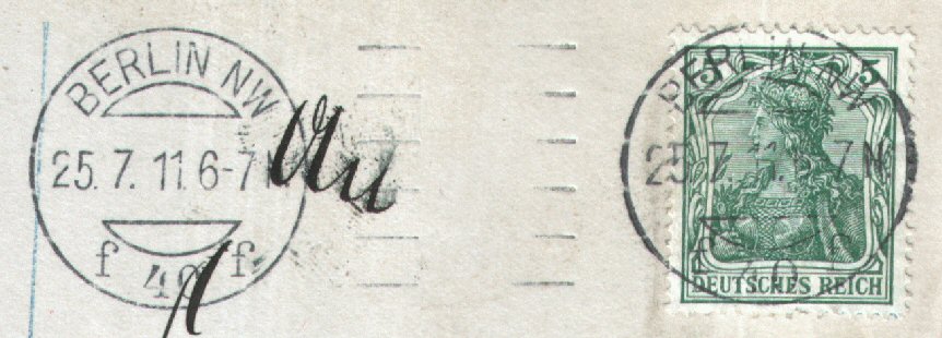 Berlin SW *61r vom 6.6.1908 als mögliches Frühdatum