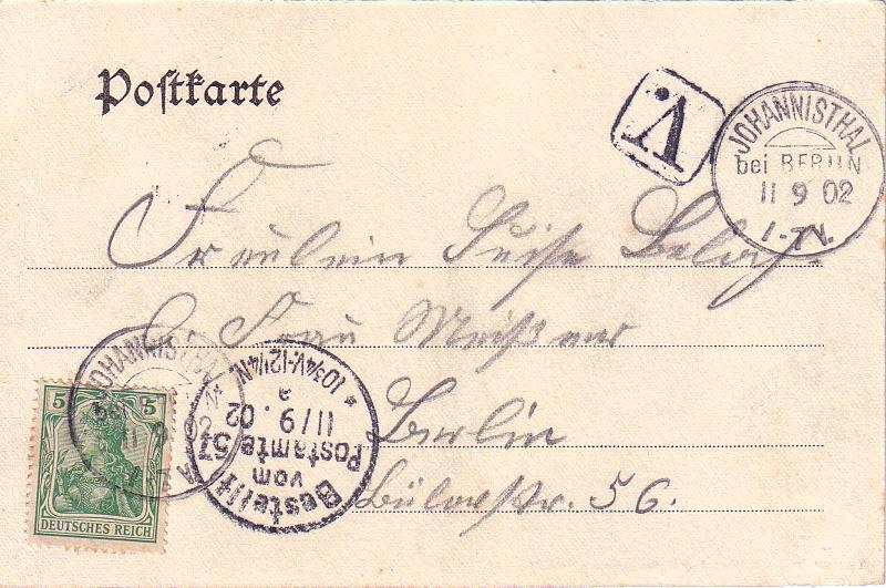 auf dieser neuerworbenen Berliner Ortspostkarte finde ich einen "V."-Stempel, den ich nicht einordnen kann. Er scheint postalisch zu sein, da Empfänger offensichtlich eine Privatperson ist, die ihre Post kaum irgendwie "verziert" haben dürfte. Die Stempelfarbe könnte identisch mit dem Ankunftsstempel sein. Briefträgerstempel aus Berlin dürfte es eher nicht geben, oder?