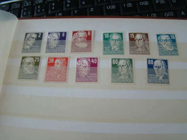 In einem Album waren hinten noch andere EInzelmarken und Blöcke z.b. 6 mal Schillerjahr 1955 ungestempelt und 11 mal für den Aufbau Nationaler Gedenkstätten ungestempelt. und noch einigeandere Sachen wie Karl Marx Block gestempelt etc.