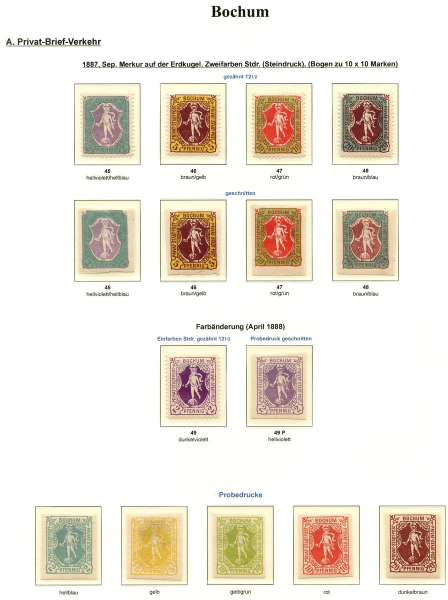 2. Reihe Bochum Mi.Nr.: 12a+ 13a (weißes Papier) je 3,50 DM auf porösem gelb. Papier je 2 DM
