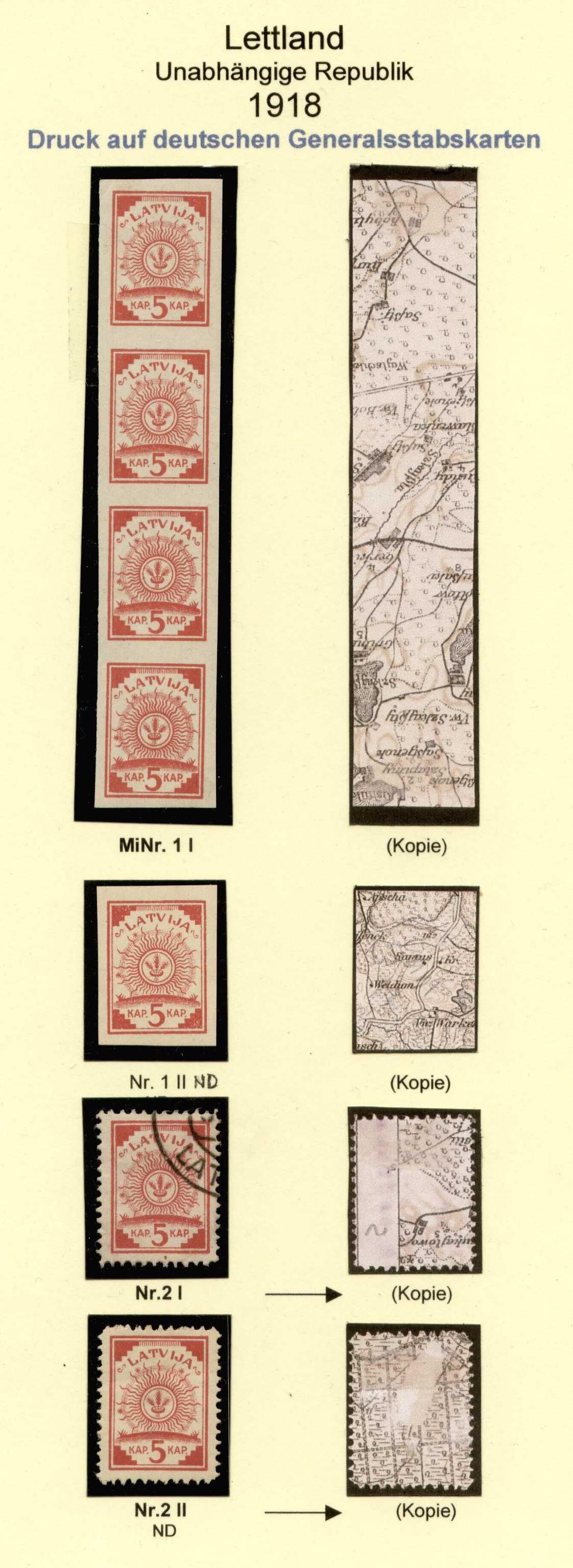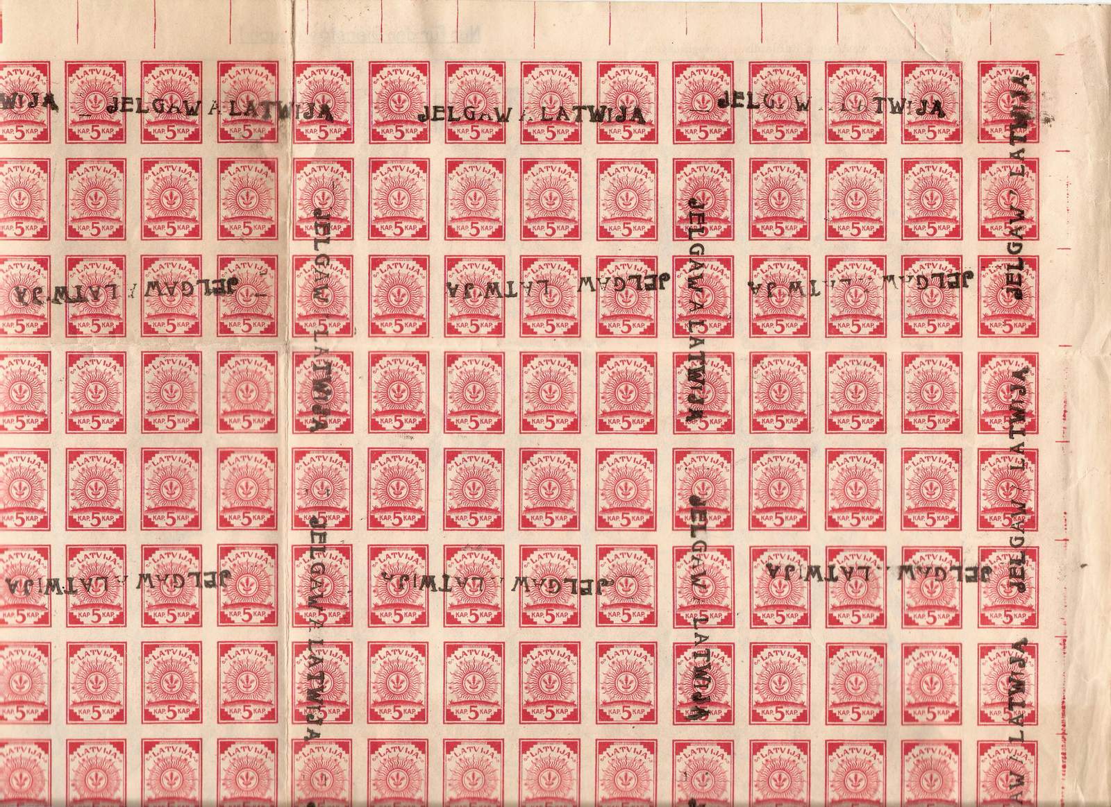 Als sich Lettland 1918 für eine Unabhängige Republik erklärte, mussten rasch eigene Marken gedruckt werden, u.zw. zu 5 Kap.in rot.