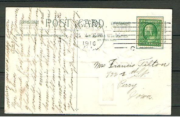 Als Appetithappen zeige ich hier eine Postkarte von Terre Haute, Indiana, aus 1910, die einen Stempel einer Maschine der Time Marking Machine Co. zeigt.