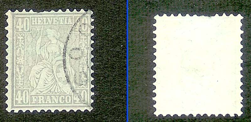 Da habe ich doch tatsächlich eine Rarität gefunden. Eine sitzende Helvetia, SBK-Nr. 50, Faserpapier. Wert gestempelt, man glaubt es kaum, Fr. 4'750.-.