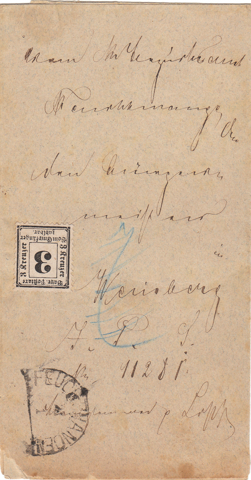 Weil es aber kein Brief innerhalb Bayerns war, und er nicht wusste, ob diese Regelung auch mit Württemberg (!) gelten würde, strich er die 7 durch und notierte jetzt endgültig 11 Kr. - Parteisache hin, Parteisache her.