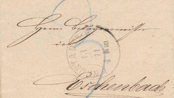 Richtig machte man es am 13.11.1874 in Neustadt an der Aisch bei einer portopflichtigen Dienstsache nach Eschenbach bei Markt Erlbach (der Zusatz "gegen Recepiss" bedeutete, dass dem Schreiben ein Rückschein beigefügt worden war, der den Absender 7 Kr. kostete).