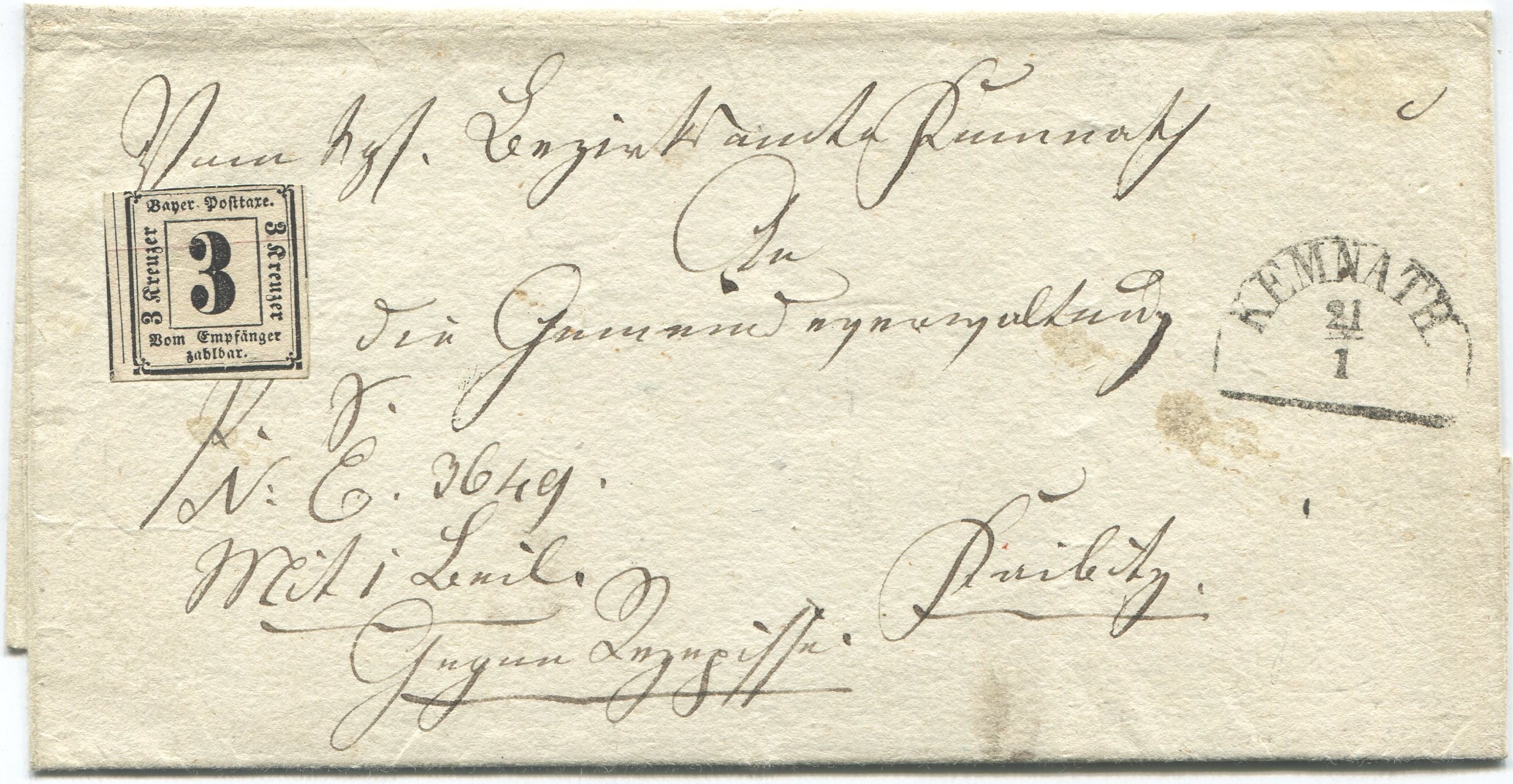Briefe innerhalb Bayerns kosteten ab dem 1.1.1868: