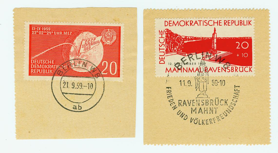 Die beiden FDC's sind mal ein Beispiel für 1. nahe vom Ausgabetag mit den zugehörigen Stempeln und 2. irgendwann später nachgemachten für den Export in die zahlungskräftige BRD. Sie gibt es von allen Wertstufen, auch bei anderen DS.