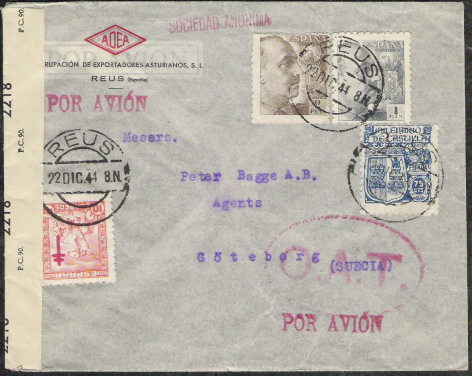 Habe hier einen Beleg von Spanien nach Schweden. Auf diesem Beleg ist eine Zwangszuschlagsmarke, welche gemäss Michel für Inlandspost obligatorisch war, und zwar vom 22.12.44 bis 03.01.45, also nur gerade 14 Tage lang.