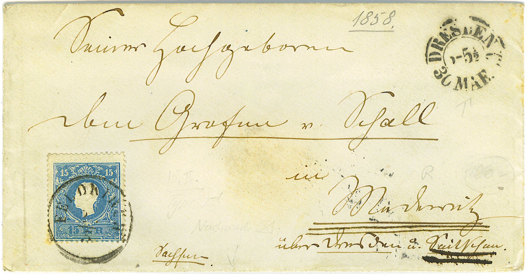Da er aber keinen Lindauer Stempel aufweist, scheint man ihn in Bregenz verschlossen und erst in Sachsen geöffnet zu haben. Nur gelegentlich finden sich auf derlei Briefen Lindauer Zweizeiler.