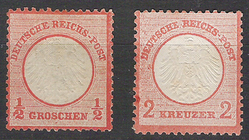 ich denke 1 ist entfalzt und gummiert, und 2 könnte postfrisch sein, es ist aber nur geschätzt
