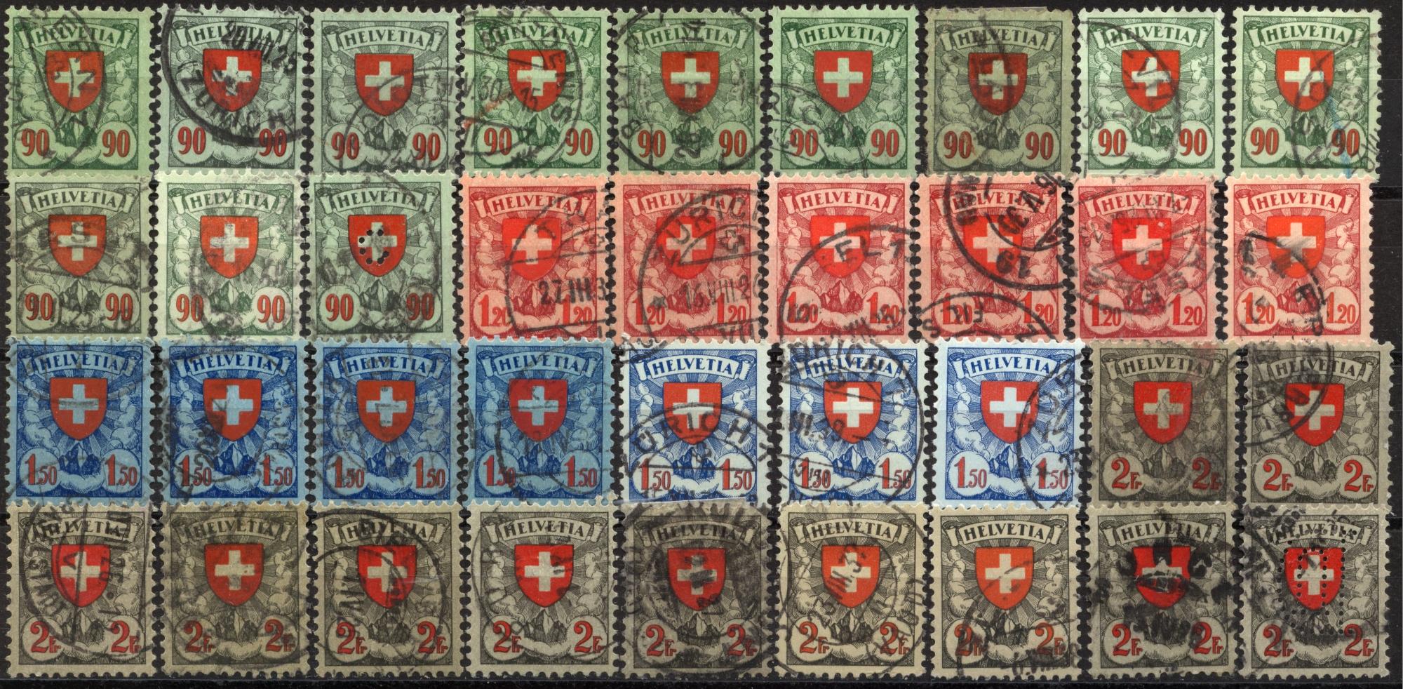 Leider alle negativ....der Rotdruck ist bei allen, bis auf die letzte 2 Fr. - Marke, zuwenig verschoben. Ich habe Dir unten mal das Bild aus dem Zumstein Spezial angehängt. So müsste der verschobene Rotdruck auf der Fr. 1.20 aussehen.