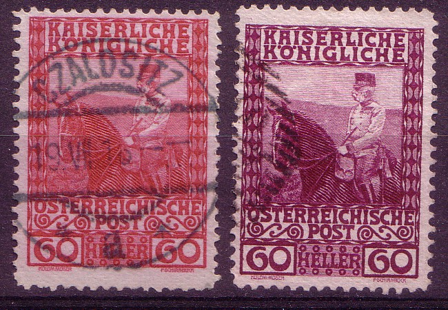 Bei dem Anlass möchte ich auch noch eine weiter Marke zeigen, über die ich schon vor einiger Zeit eine ähnliche Frage gestellt habe aber keine Antwort bekommen habe. Wiederum: Fehlfarbe? Die Marke der Jubiläumsausgabe von 1908 (ANK 151) ist violett (in echt noch dünkler) statt karmin, wie sie eigentlich sein sollte (-> Vergleichsstück links).