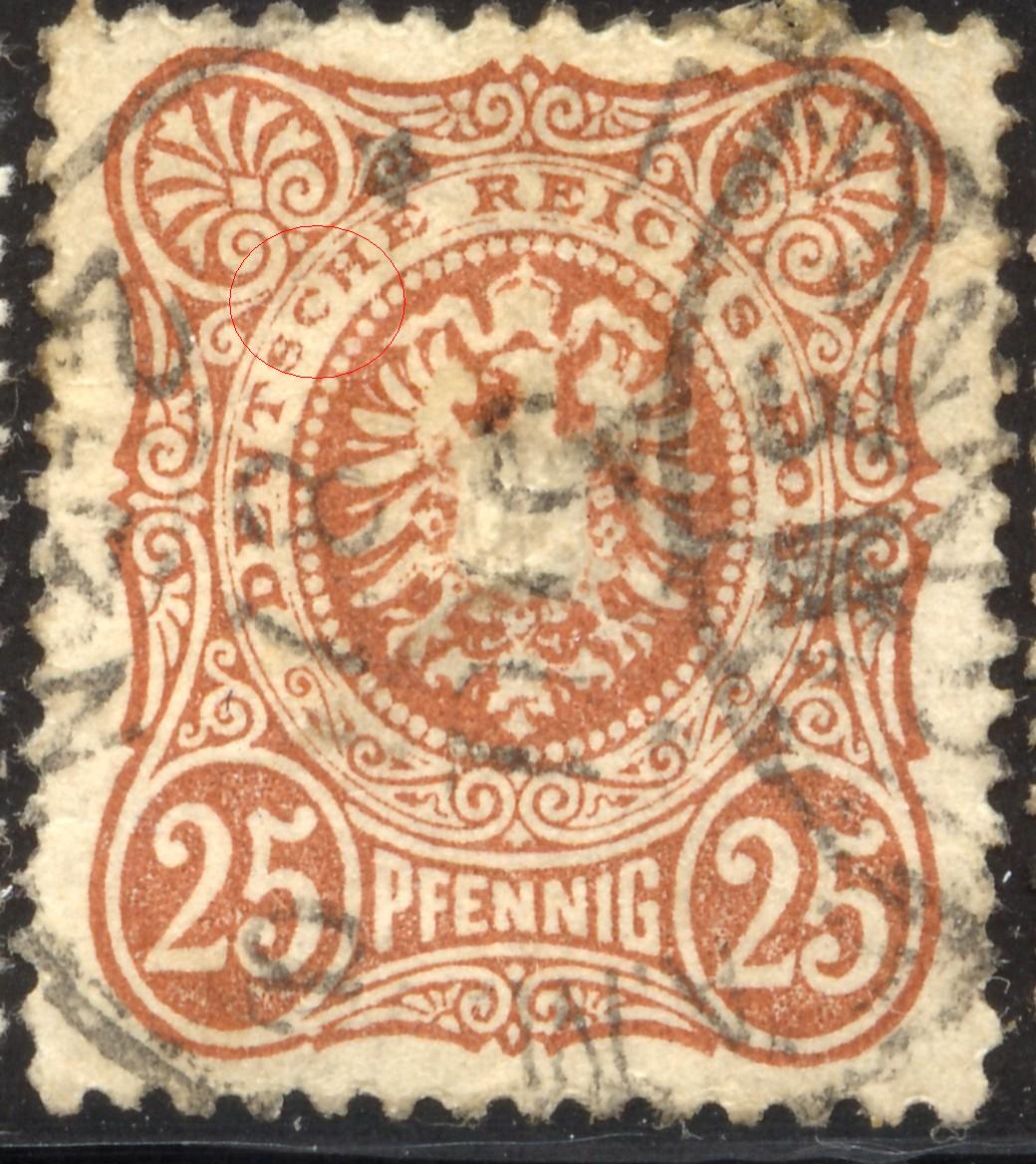 Hallo, bei der Mi.-Nr.: 19 mit dem SKA handelt es sich um den Plattenfehler XI. Das gebrochene H in Groschen, die Kerbe im Innenkreis rechts zwischen der 10.und 11. Strichleiste und die Stellung des SKA weisen deutlich darauf hin