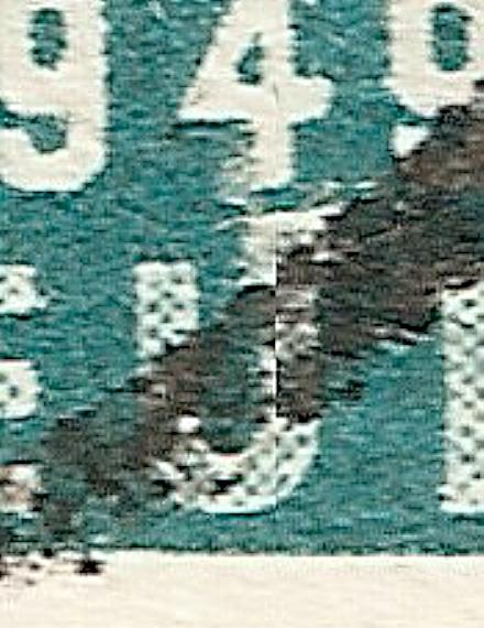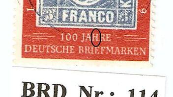 Hallo, mal wieder eine Druckabweichung die, die Jahre vor 1960 betrifft. Mi - Nr. 257 mit blauen Fleck im oberen Markenrand, oberhalb der "1" der Wertziffer "10".