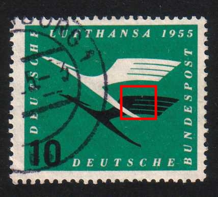 Hallo, noch sehr wenig Betrieb auf der Seite von „Bund-Plattenfehler 1949-1959“. Von mir trotzdem eine noch nicht bei veröffentlichte festgestellte Druckabweichung, die bei mir mehrmals vorhanden ist.
