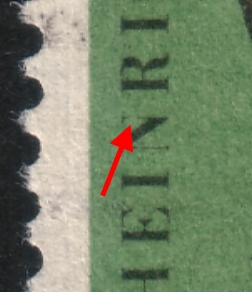 Bild 1: Den blauen Strich über dem oberen rechten Bildeck gibt's bei dem Bogen auf Feld 39. Wenn ich bei dem anderen Bogen ganz genau hinschaue kann ich dort auch einen blauen Strich sehen. Wahrscheinlich wird dieser nur bei einer Passerverschiebung sichtbar.