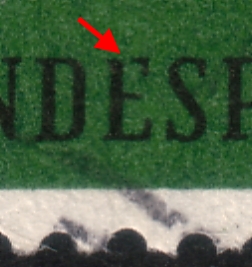 Bild 2: Roter Punkt im Markenrand über dem zweiten f von Briefbeförderung. Und schwarzer Fleck am rechten Bildrand. Beide Fehler kommen auf beiden Bögen vor (Feld 29).