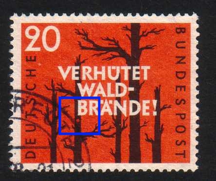 heute einmal Mi-Nr. 283. Die beiden vorgestellten Druckabweichungen werden von mir als Druckzufälligkeiten beurteilt, wenn auch bei Philotax einige dieser ähnlichen Abweichungen (Farbflecken in den Baumstämmen) noch zur Prüfung anstehen.